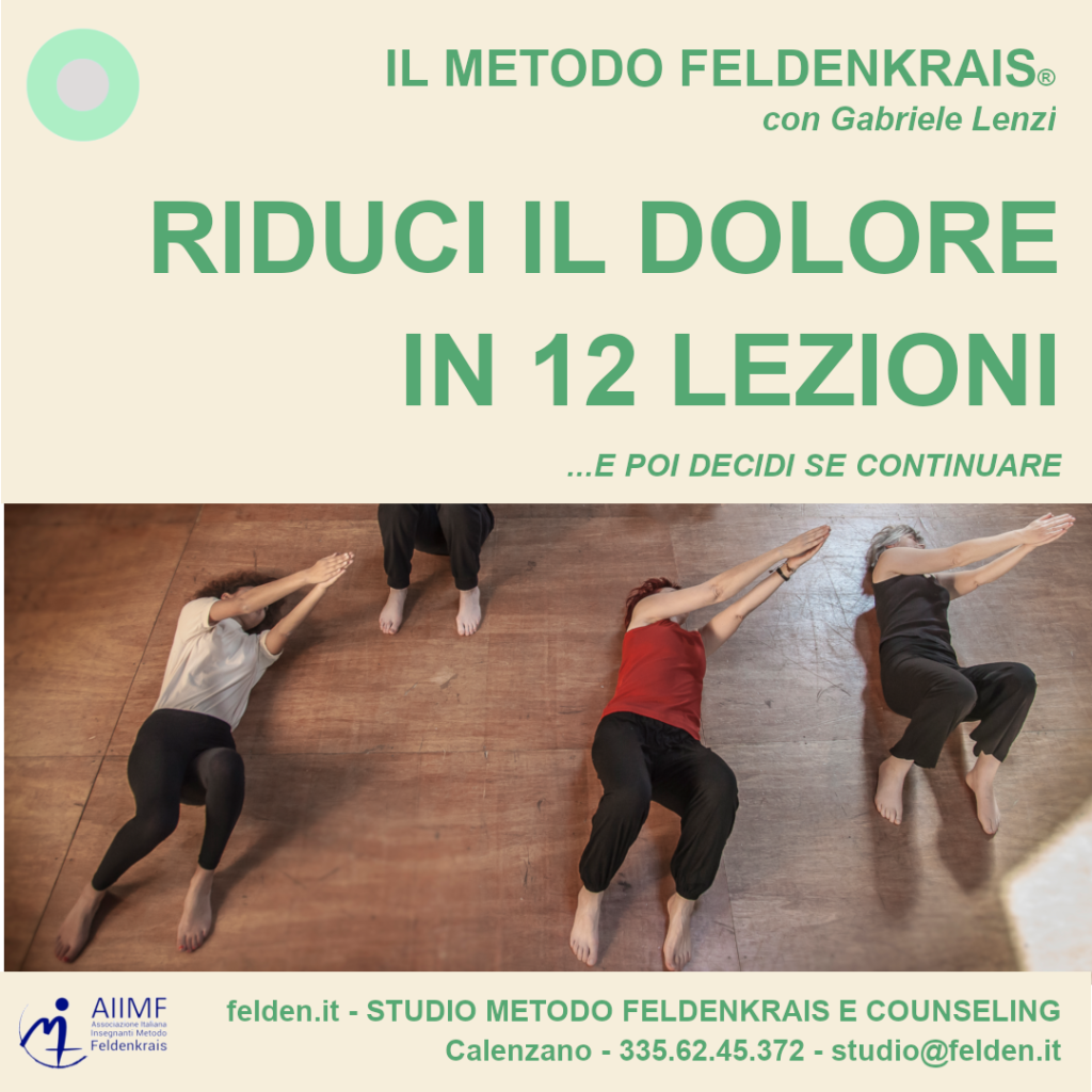 Il 9 gennaio presenterò un percorso di orientamento per la risoluzione del dolore cronico, su facebook alla pagina felden.it e poi farò lo stesso in presenza nel mio studio a Calenzano (Fi) il 15 gennaio.